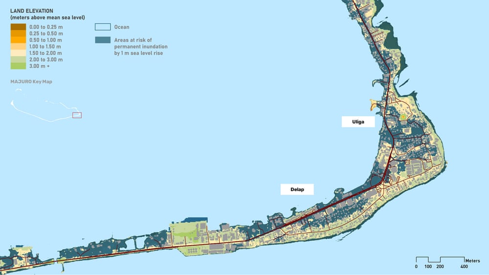 As Ilhas Marshall podem perder partes importantes de suas terras e infraestrutura, disse Artessa Saldivar-Sali, especialista em gestão de risco de desastres do Banco Mundial e chefe de trabalho do relatório. Se o nível do mar subir um metro, cerca de 40 por cento dos edifícios em Majuro ficariam permanentemente inundados. Quase todos os cerca de 20.000 habitantes também seriam freqüentemente afetados pelas inundações.