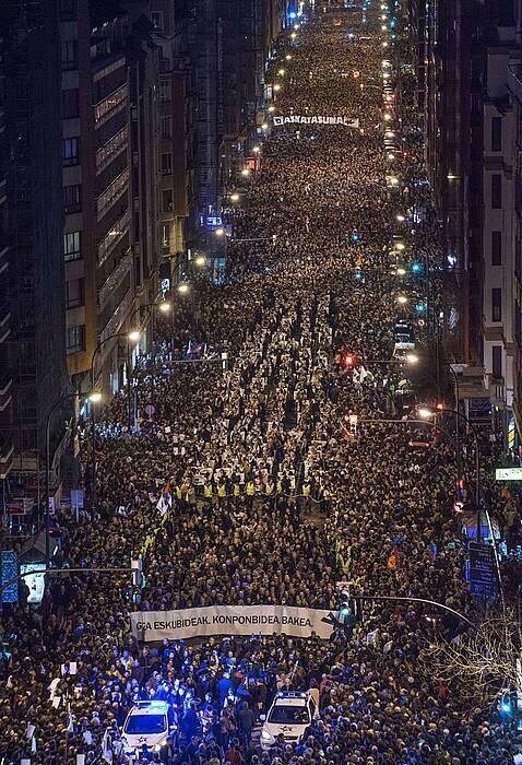 Mais de 100 mil comparecem às ruas de Bilbao, capital da Província de Bisca no País Basco (Euskal Herria), numa manifestação em apoio a prisioneiros políticos bascos, incluindo aquelas vinculados ao grupo separatista ETA. Esta manifestação massiva ocorreu mesmo após o governo central em Madri haver proibido que a mesma ocorresse. Agora fica claro que mesmo divergindo dos métodos do ETA, há uma massa de bascos que os consideram prisioneiros políticos e não como meros terroristas como alegam os governos da Espanha e da França.