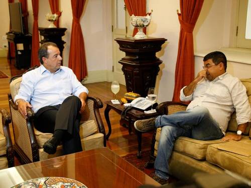 A imagem acima ilustra a matéria assinada pela jornalista Juliana Castro do “O GLOBO” sobre o encontro onde o presidente do PT/RJ, Washington Quaquá, comunicou formalmente ao (des) governador do Rio de Janeiro, Sérgio Cabral, a saída do partido de seu (des) governo (Aqui!).