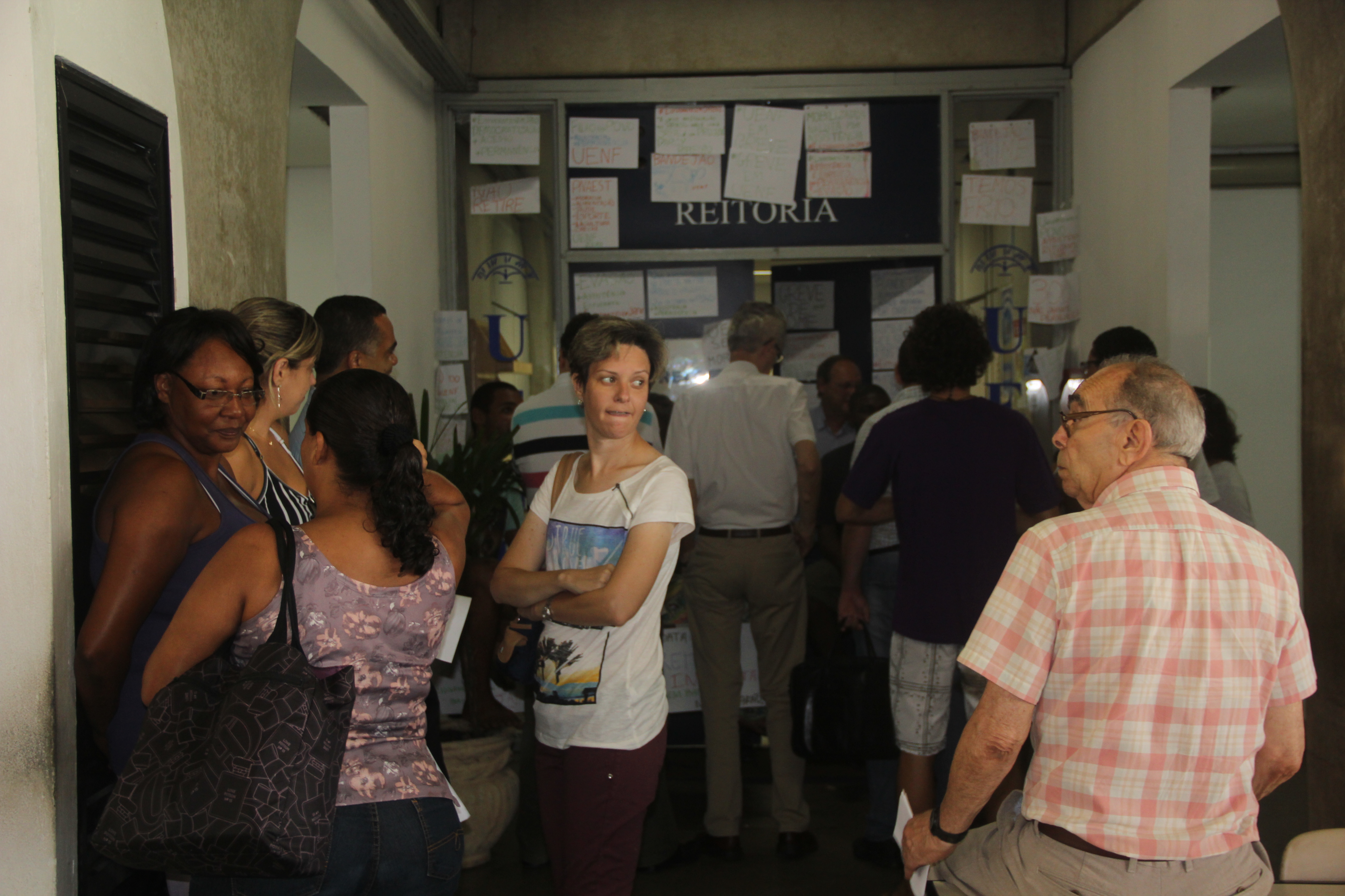 O processo de lacramento da entrada da reitoria da UENF continua e com mais estudantes, servidores e professores chegando para dar apoio à manifestação. Uma primeira consequência desta ação dos estudantes foi a suspensão, ao menos temporária, da reunião semanal do Colegiado Executivo que, apesar de levar esse nome, é apenas um braço executivo da reitoria da UENF e que vem concentrando poderes excepcionais na gestão da instituição.