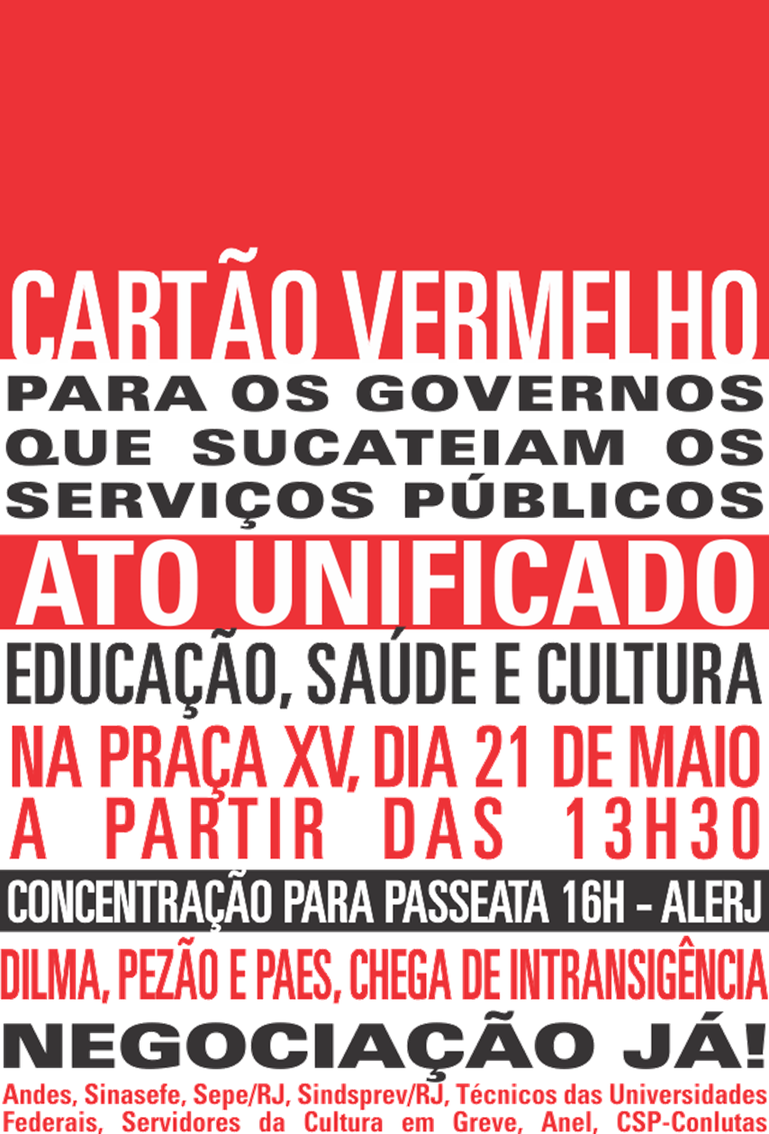 Convocatória para ato unificado no dia 21 de maio no Rio de Janeiro