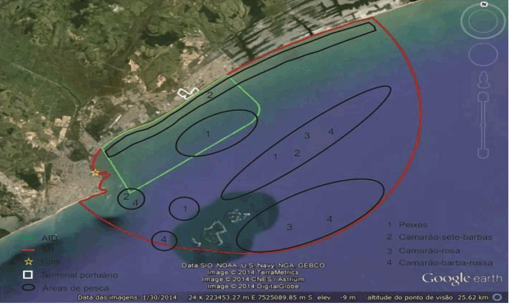 Um dos aspectos que mais me chamou a atenção, até porque já vi esse filme no Porto do Açu, é dos possíveis impactos sobre a capacidade de pescadores artesanais, cujas áreas preferenciais de captura estão dentro da área de exclusão do futuro porto, de continuarem trabalhando, especialmente aqueles com poder aquisitivo e, consequentemente, com menores embarcações que terão menor capacidade de se adaptar a uma nova realidade marcada por forte trânsito de grandes embarcações. Para ilustrar melhor essa situação, coloco a imagem abaixo que foi usada pelos pesquisadores do NUPEM para demonstrar a baixa efetividade do EIA/RIMA em prever problemas futuros para a comunidade de pescadores.