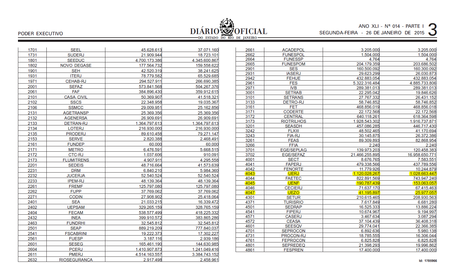 Há alguns dias repercuti aqui uma matéria do jornal Extra dando conta de uma grande tesourada que o (des) governo Pezão realizou contra o orçamento das universidades estaduais, mas que apenas mostrava o tamanho da perda orçamentária da Universidade do Estado do Rio de Janeiro (UERJ). Pois bem, graças à divulgação nas redes sociais dos valores relativos à Universidade Estadual da Zona Oeste (UEZO) pude encontrar também os valores relativos às perdas infringidas à Universidade Estadual do Norte Fluminense (UENF), e elas são consideráveis como mostram os números na tabela abaixo.