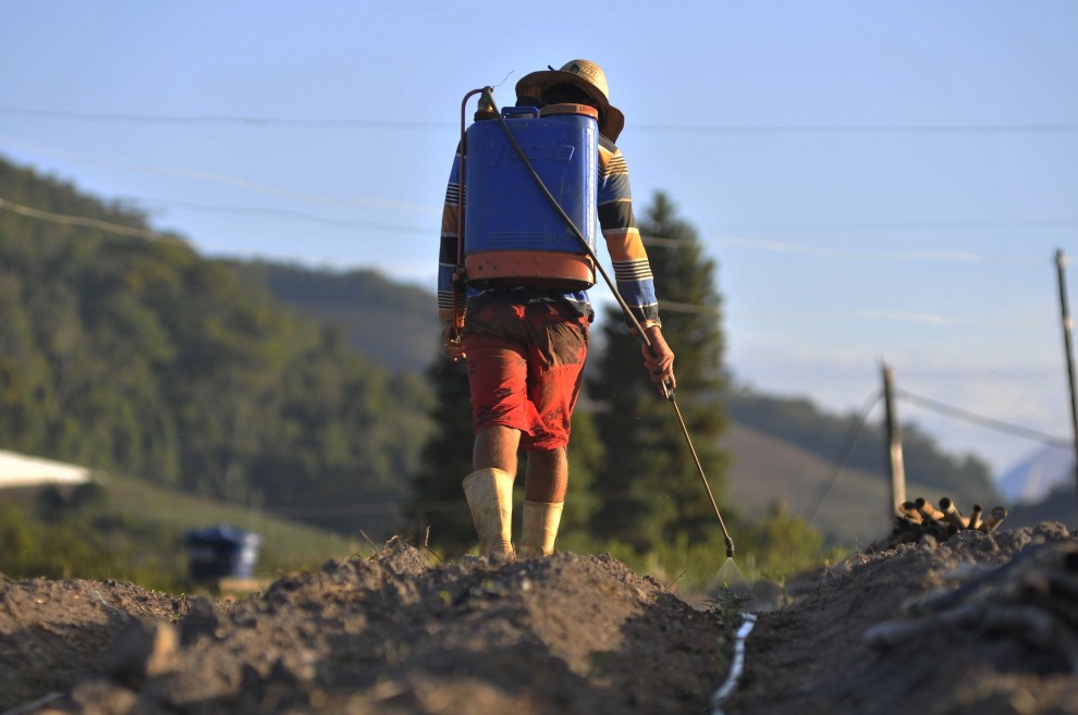 Em cada pé de tomate, uma borrifada certeira de veneno. Ao longo do dia, Roberto Matias vai enchendo as plantas com agrotóxico e, ao mesmo tempo, contaminando a si próprio. São 15 anos atuando sem nunca ter recebido qualquer equipamento de proteção dos seus empregadores. “Teve um dia que eu desmaiei na roça. Fui socorrido por um colega e por pouco não morri. Minha memória se foi, assim como minha saúde”, lamenta, esboçando sentimentos de culpa, o trabalhador.