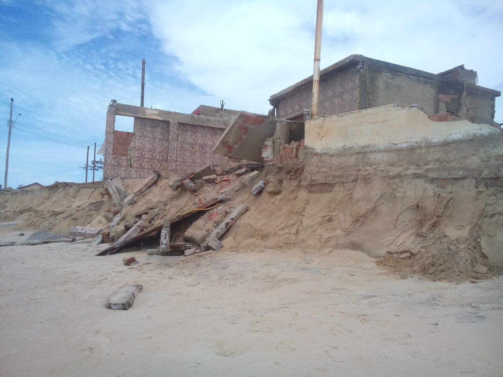 As imagens abaixo mostram uma construção que até ontem estava de pé e abrigava um bar na Praia do Açu, mas que desabou na manhã deste sábado (07/03).