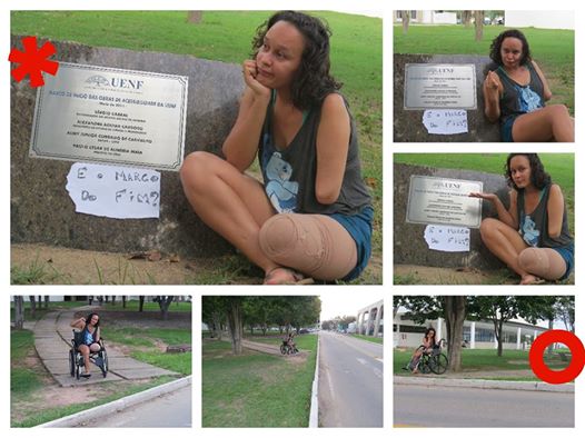 Além dos problemas em torno da necessária transparência sobre uma obra que acaba de ser iniciada, o que anda causando espécie dentro da comunidade universitária é a falta de conclusões de outras que foram merecedoras das célebres placas de inauguração, como foi o caso da obra de acessibilidade que deveria ter facilitado a vida dos possuidores de necessidades físicas especiais. Entretanto, apesar da pedra fundamental do projeto ter sido lançada com pompa e circunstância em Maio de 2011 (!) , até hoje o que se vê é a falta de condições mínimas de acessibilidade para portadores de necessidades especiais ou não. Aliás, a falta de conclusão dessa obra está inclusive sendo “celebrada” nas redes sociais como bem demonstra a imagem abaixo.