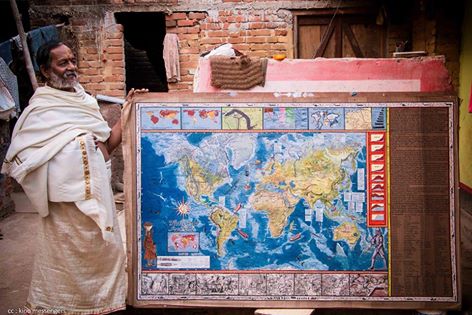 O mapa foi produzido por Sridhar Maharana, um artista aclamado da vila Raghurajpur no distrito de Puri de Odisha, Índia.