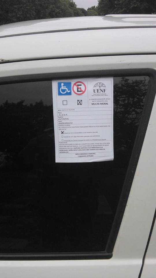 Mas num fato que expressa bem a raiz dos problemas que a UENF hoje enfrenta, o primeiro veículo “multado” foi um carro oficial cujo motorista resolveu estacionar num local indevido, como bem mostra a imagem abaixo.