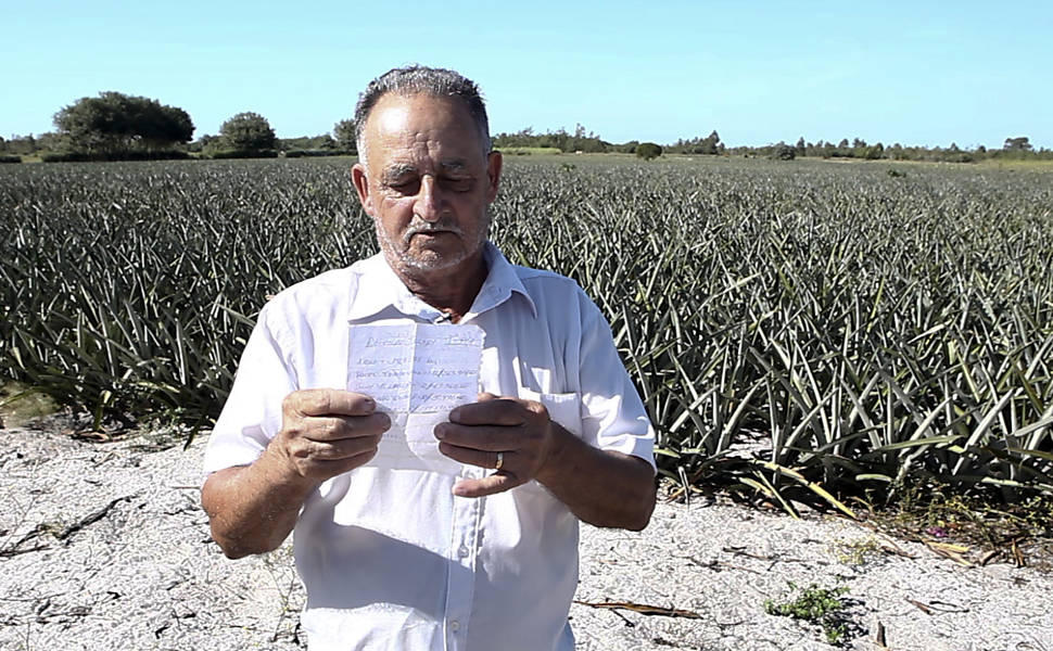 Na imagem acima, o agricultor Reinaldo Almeida mostra um pedaço de papel entregue por um servidor da CODIN indicando o valor que seria pago por sua pequena propriedade. O Sr. Reinaldo está recorrendo na justiça contra o preço sugerido.