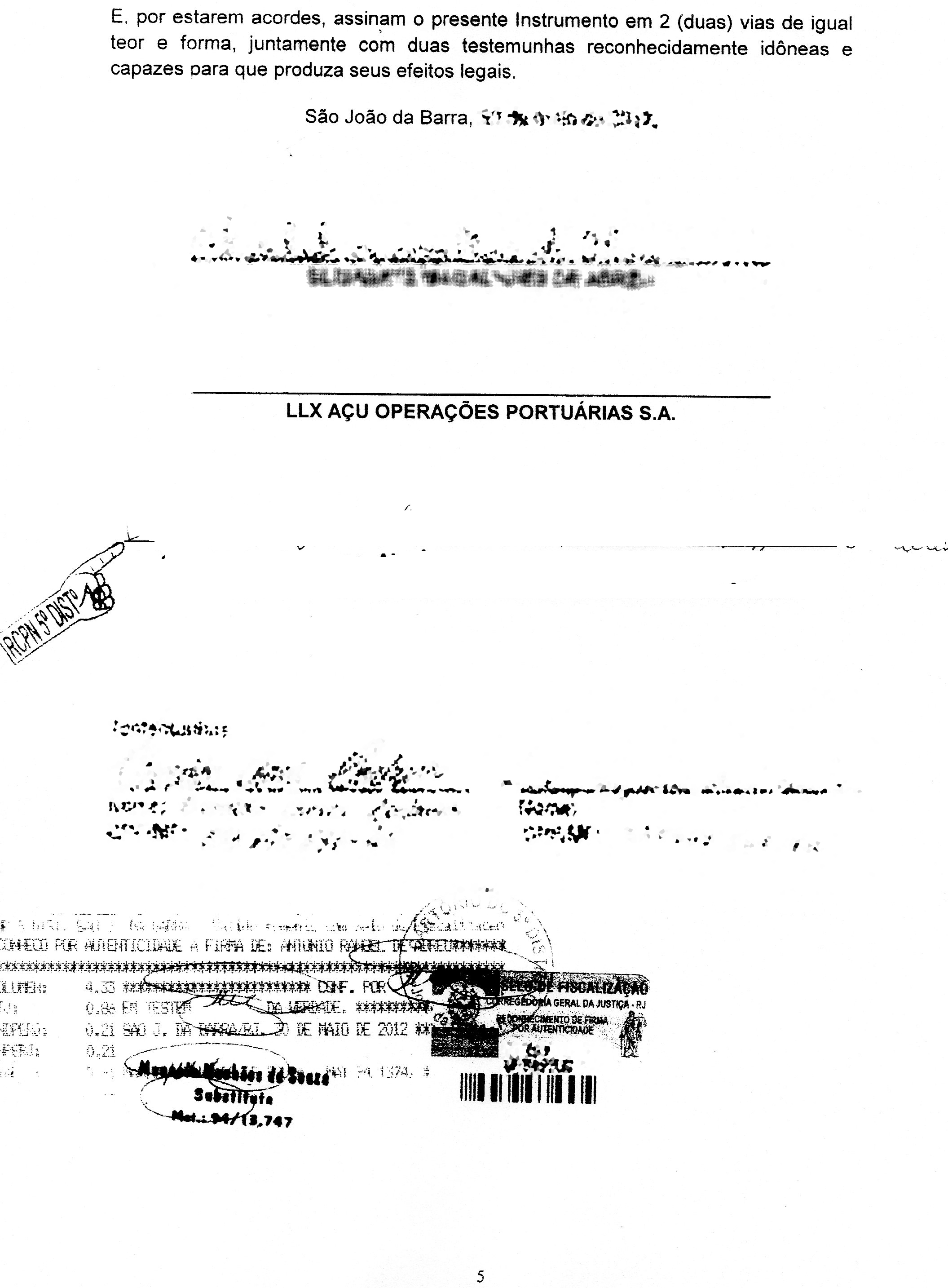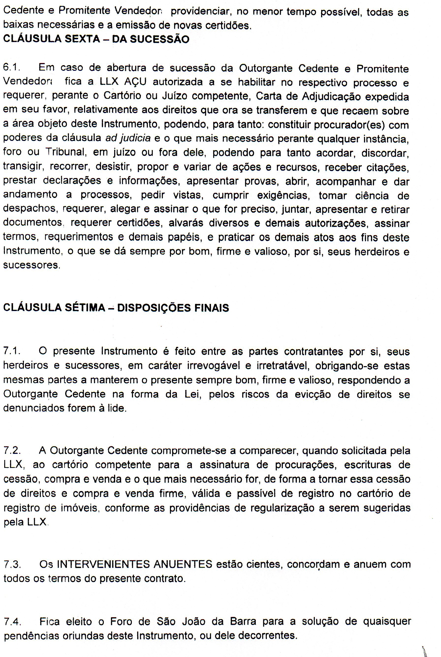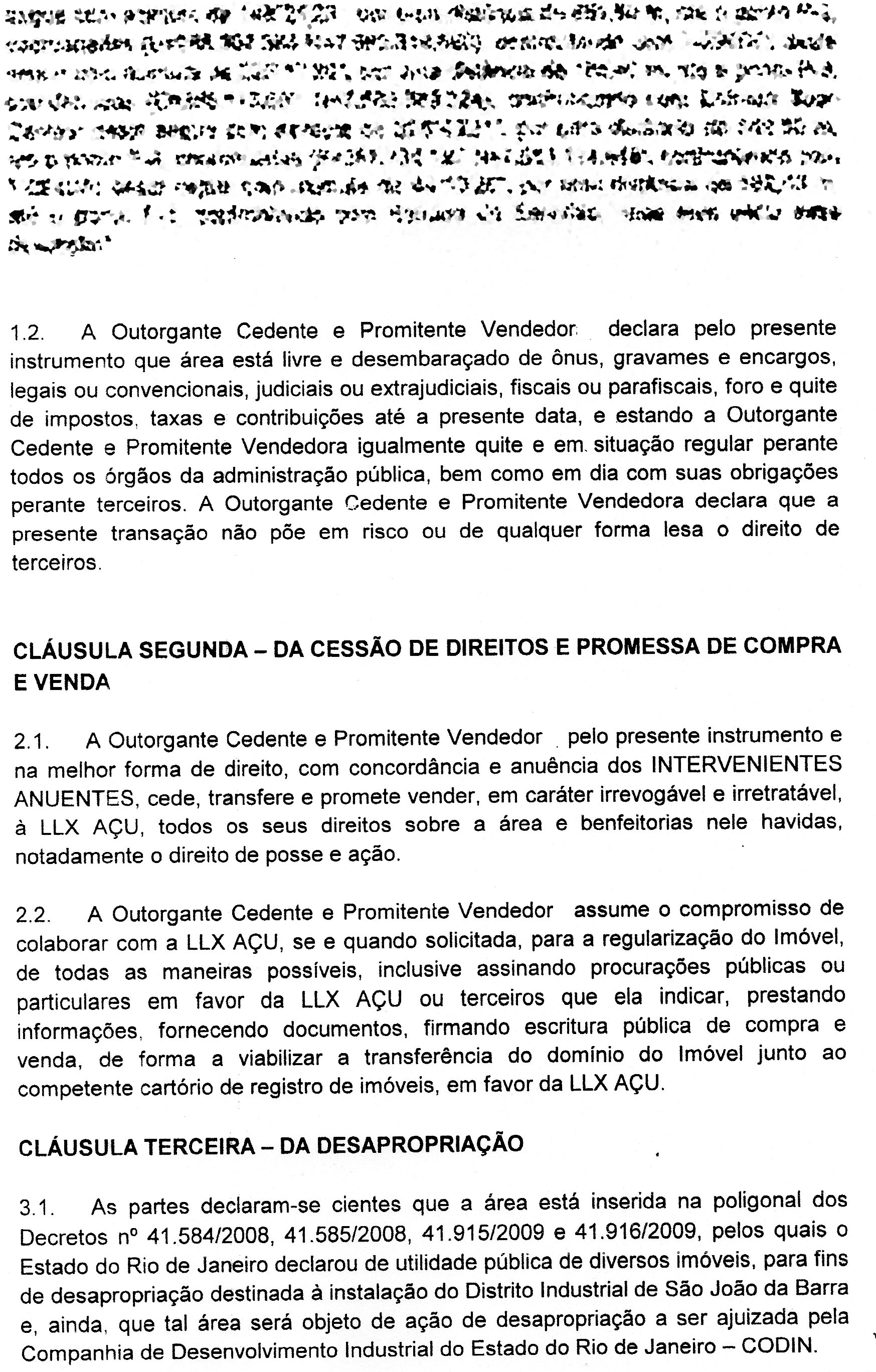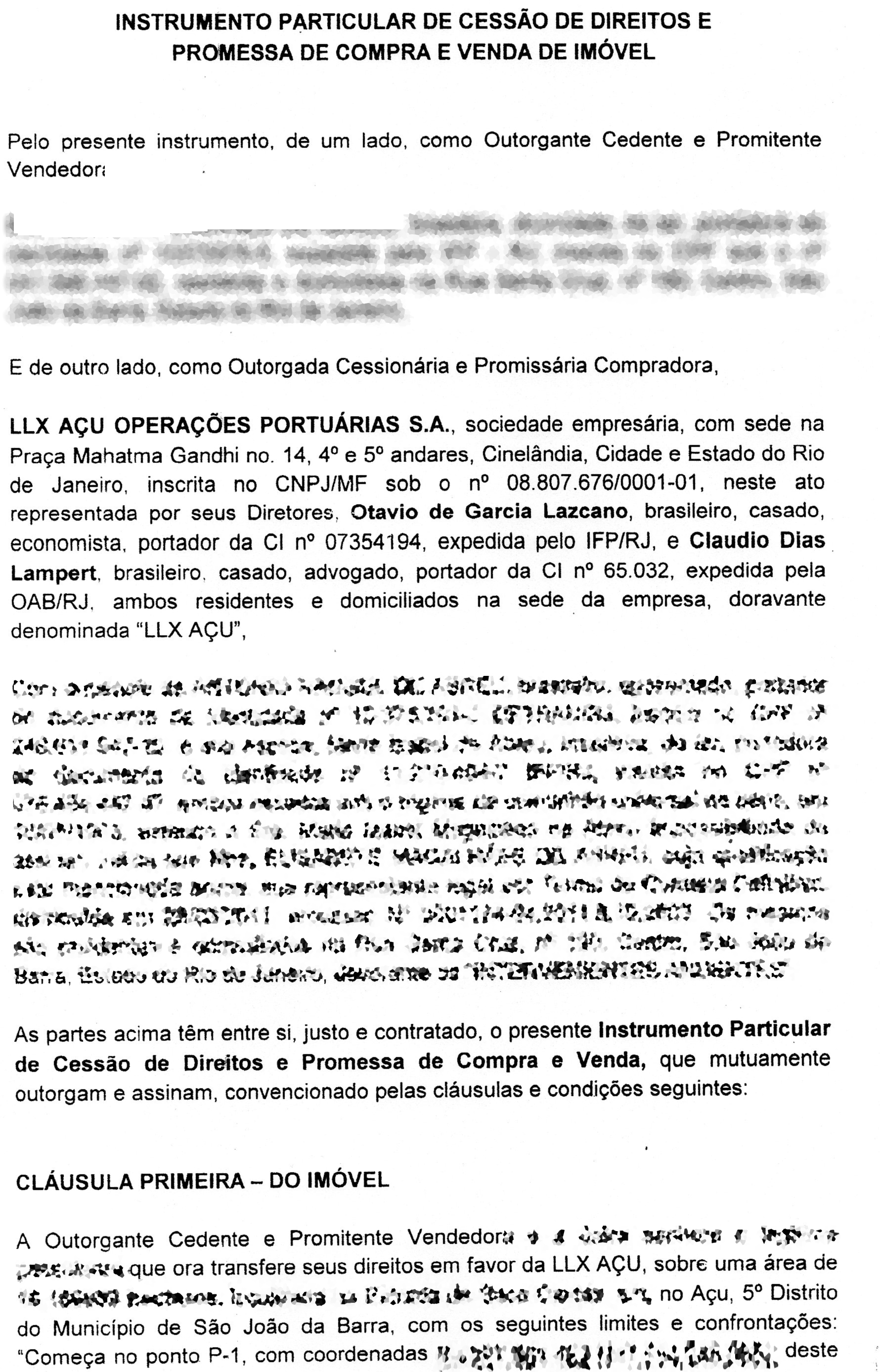 Como em muitos casos, a última postagem deste blog sobre o interesse da justiça de São João da Barra em ouvir agricultores que tenham vendido terras para a LL(X) rendeu mais uma interessante contribuição dos seus leitores. É que hoje recebi a cópia de um contrato de compra e venda entre um agricultor do V Distrito e a LL(X) Açu Operações Portuárias, o qual é mostrado abaixo.