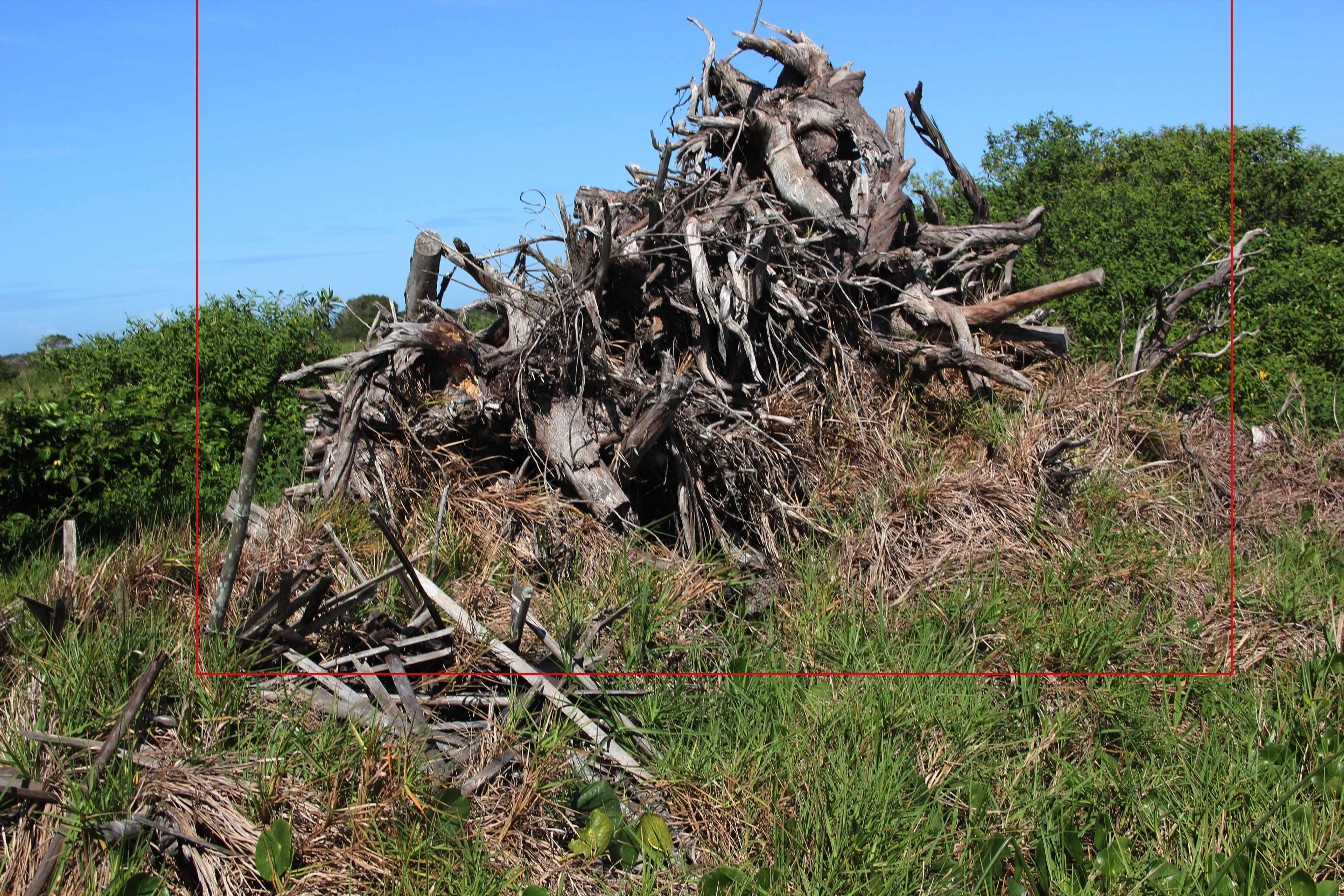 Aparente amontado de vegetação de restinga que teria sido removida de alguma área no interior da RPPN Fazenda Caruara.