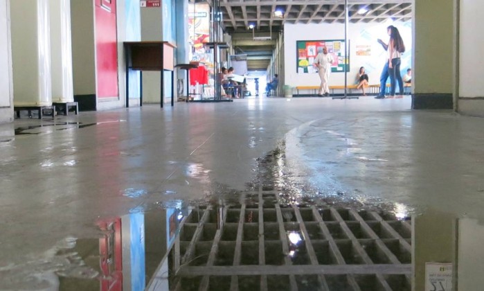Vazamento de água em corredor da Uerj – Marcelo Carnaval / Agência O Globo