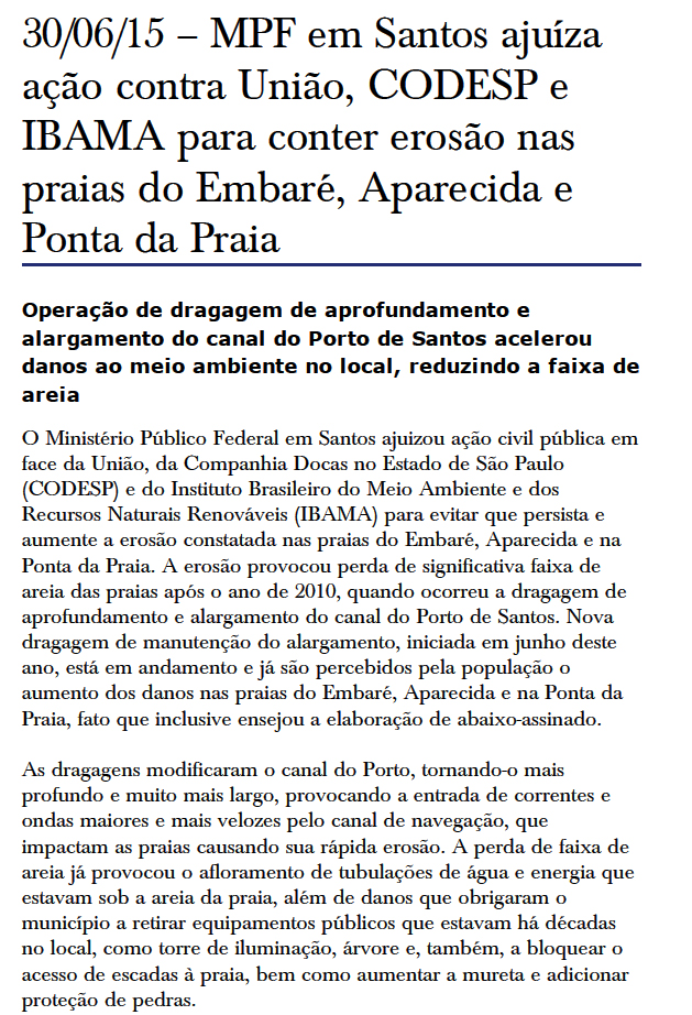 Dragagens e suas consequências: a experiência do Porto de Santos