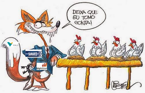 Poucos devem ter antecipado esse desdobramento, mas o incidente causado pela Mineradora Samarco (Vale+ BHP Billiton) em Mariana (MG) está se constituindo numa materialização do ditado da “Raposa tomando conta do galinheiro”. É o que objetivamente pode ser depreender da leitura do artigo mostrado abaixo e que trata do acordo extrajudicial que está sendo firmado para tratar dos efeitos e consequências sociais e ambientais do TsuLama da Samarco.