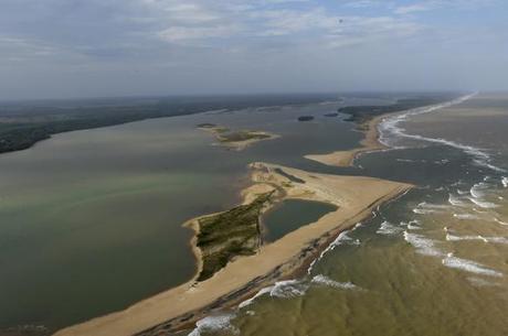 A lama da barragem da Samarco com rejeitos de mineração segue ao longo do Rio Doce em direção à foz, localizada em Regência (ES)Fred Loureiro/Secom ES