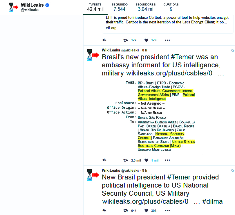 WikiLeaks expõe Michel Temer como informante do governo dos EUA