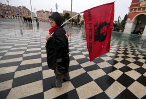 A woman holds a flag showing a portrait of Che Guevara as she attends a demonstration against the French labour law proposal in Nice junho 5, 2016 / Marcos Pędłowski