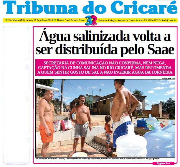 O colapso hídrico continua rondando São Mateus e causando sofrimento na sua população. Que lições podemos tirar dessa situação?