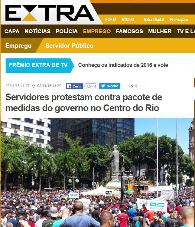 Mídia corporativa repercute ato dos servidores na Alerj