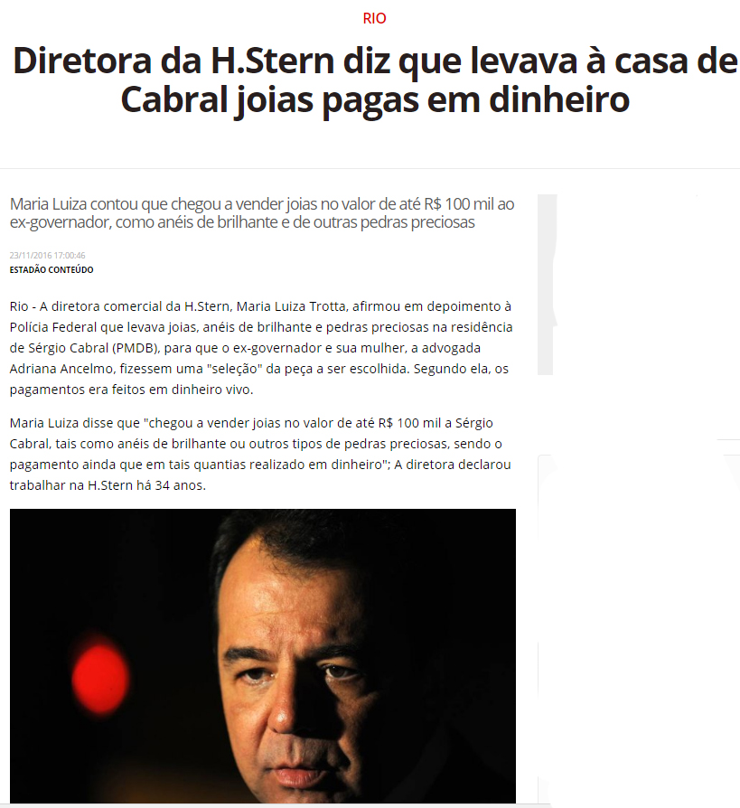 H Stern, beneficiária da farra fiscal, vendia jóias e fazia entrega a domícilio para Sérgio Cabral
