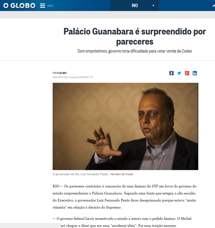 (Des) governo Pezão contra a parede: liminar para antecipar empréstimo está na chuva