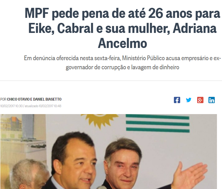 MPF denuncia Eike Batista e Sérgio Cabral por corrupção e lavagem de dinheiro
