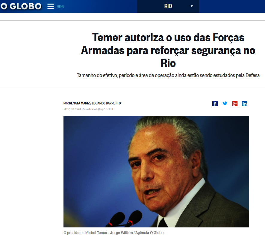 Michel Temer e Pezão vão colocar as Forças Armadas nas ruas para “ajudar na segurança” ou para viabilizar a privatização da CEDAE?