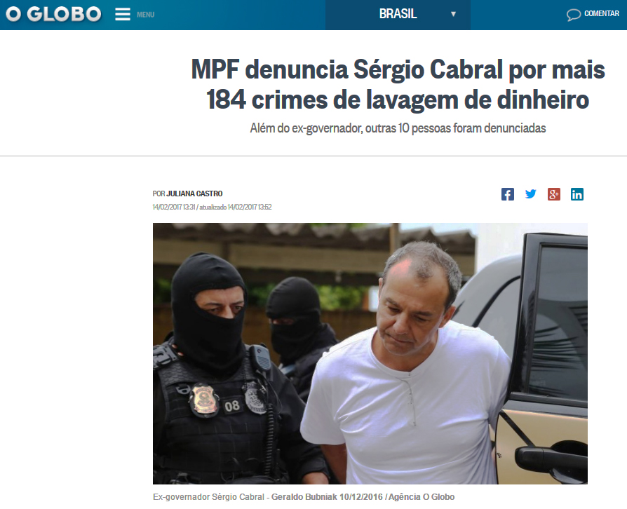 Sérgio Cabral é indiciado pela 4a. vez e é imputado em número recorde de crimes de lavagem de dinheiro