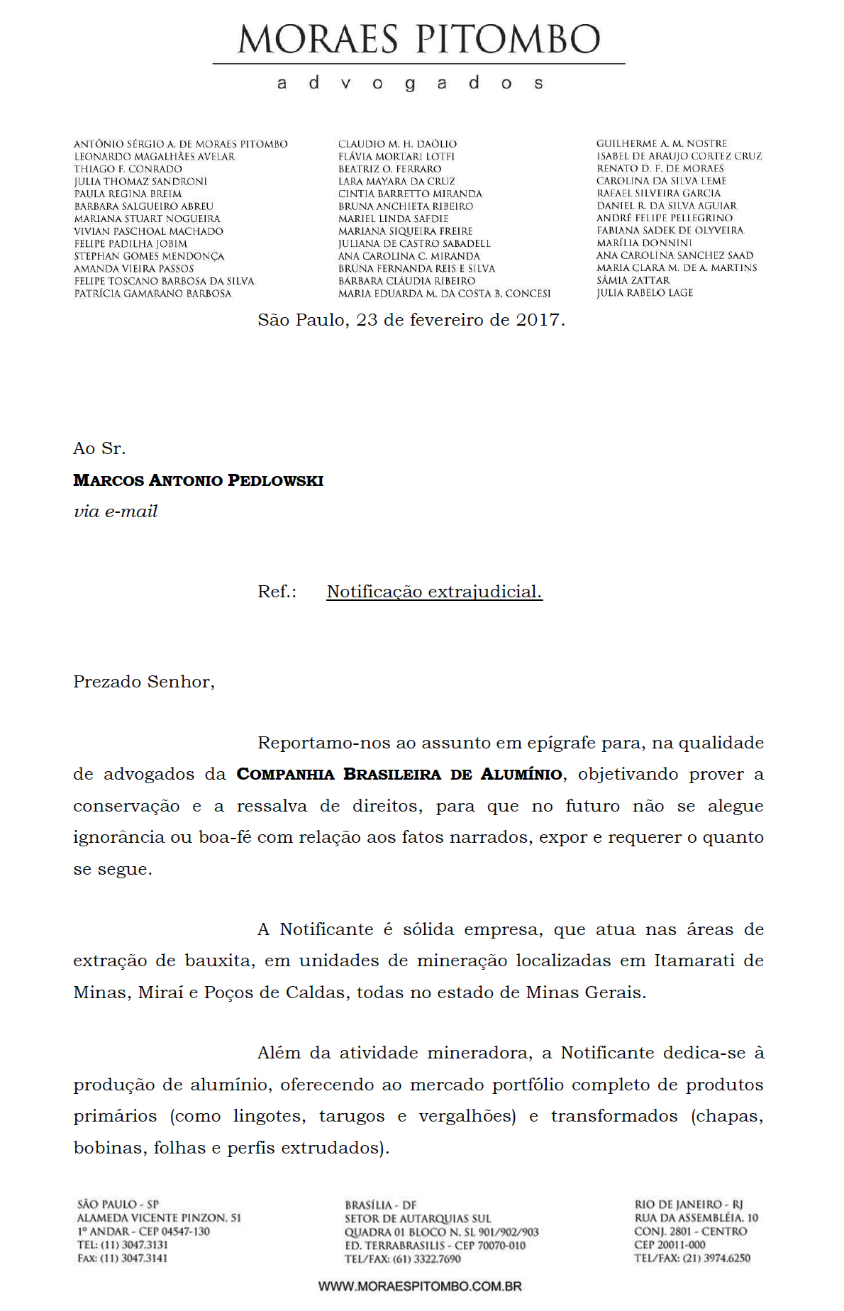 Blog do Pedlowski recebe notificação extra-judicial por noticiar conflito socioambintal em Belisário (MG)
