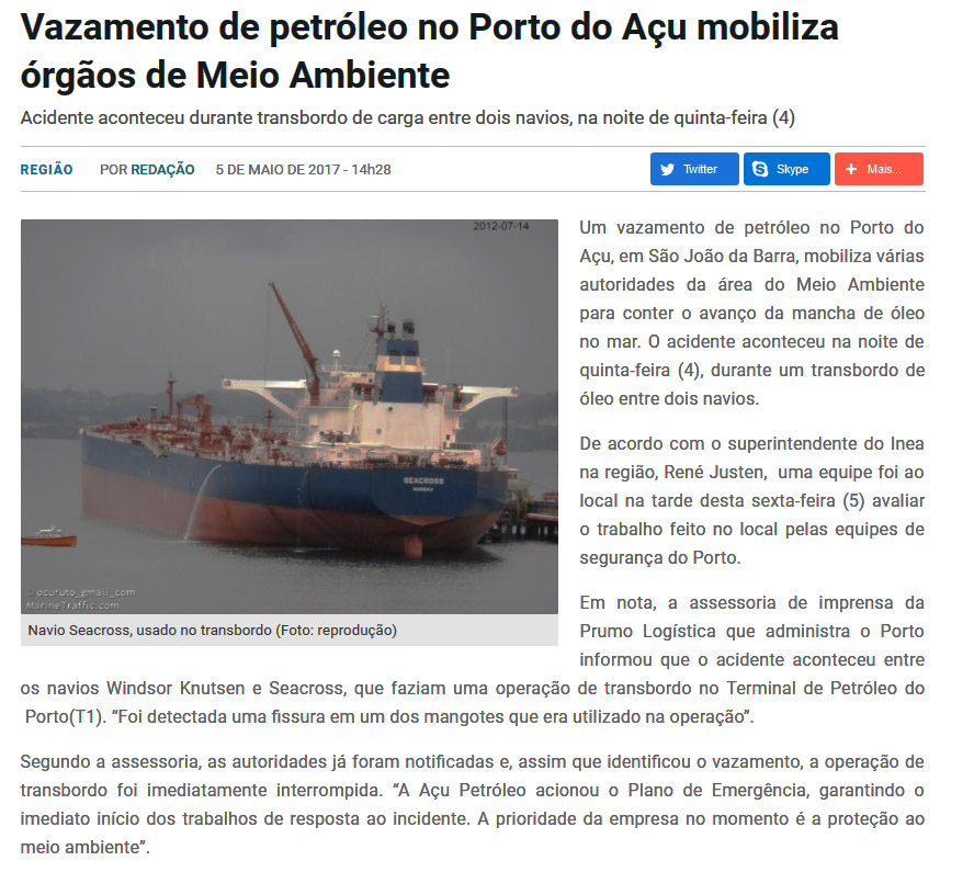Porto do Açu: vazamento de petróleo é apenas outra face das mazelas ambientais impostas pelo porto de Eike Batista