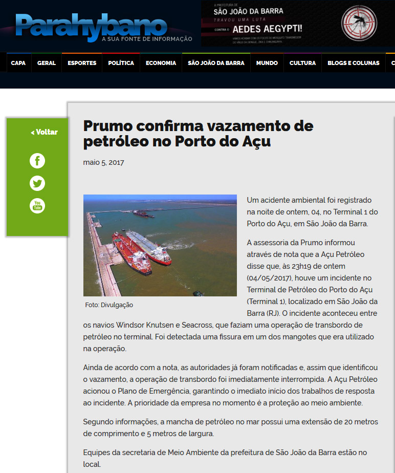 Porto do Açu: vazamento de petróleo é apenas outra face das mazelas ambientais impostas pelo porto de Eike Batista