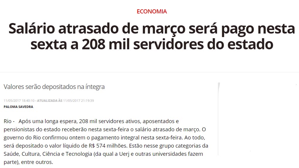 (Des) governo Pezão paga de surpresa salários de Março e confirma tese da ANAFERJ