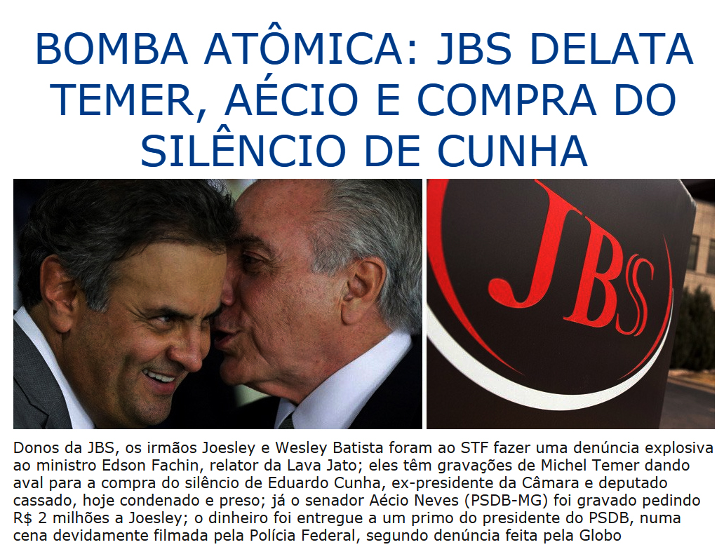 JBS joga bomba atômica no governo Temer, e ainda leva Aécio Neves junto