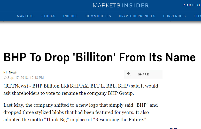 BHP Billiton muda de nome, mas não escapa de ação de R$ 26.5 bilhões