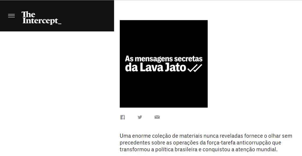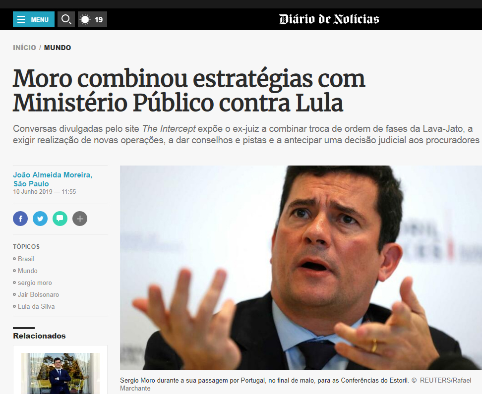 Estou acompanhando desde ontem a cobertura da mídia corporativa brasileira sobre o escândalo eclodido pelo site “The Intercept” que expôs uma pequena porção de um fato material que seus editores estão de posse e que mostra a cooperação indevida e ilegal entre o ex-juiz federal e atual ministro da Justiça do governo Bolsonaro, Sérgio Moro, e os procuradores da chamada “Operação Lava Jato” para perseguir, julgar e prender o ex-presidente Lula, de modo a impedir que ele se candidatasse a presidente nas eleições presidenciais de 2018.