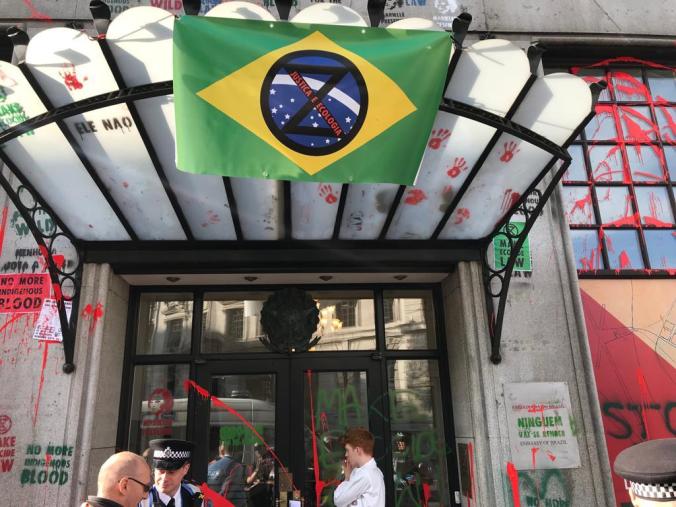 É por isso que nesta manhã de 3a. feira (13/08), a entrada da embaixada brasileira em Londres amanheceu completamente pichada com mensagens pró-ambiente e contra o governo Bolsonaro (ver fotos vindas da página do jornalista Jamil Chade na rede social Twitter).