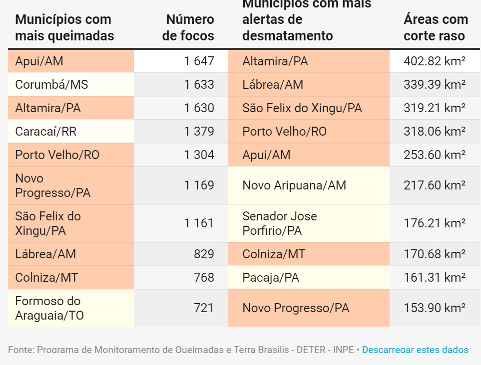 Satélites da Nasa mostram alta de queimadas junto ao desmatamento