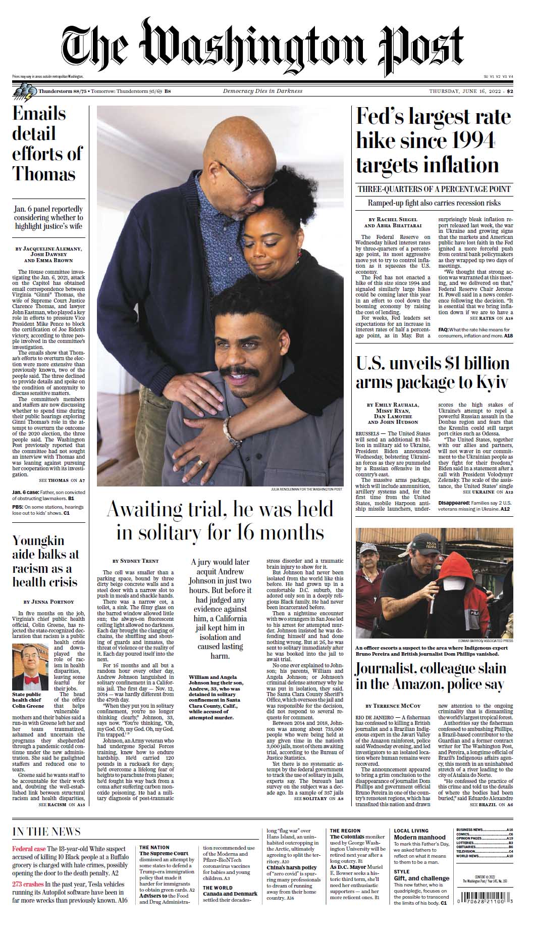 Mortes de Bruno e Dom são citadas na capa da edição diária do “The Washington Post”