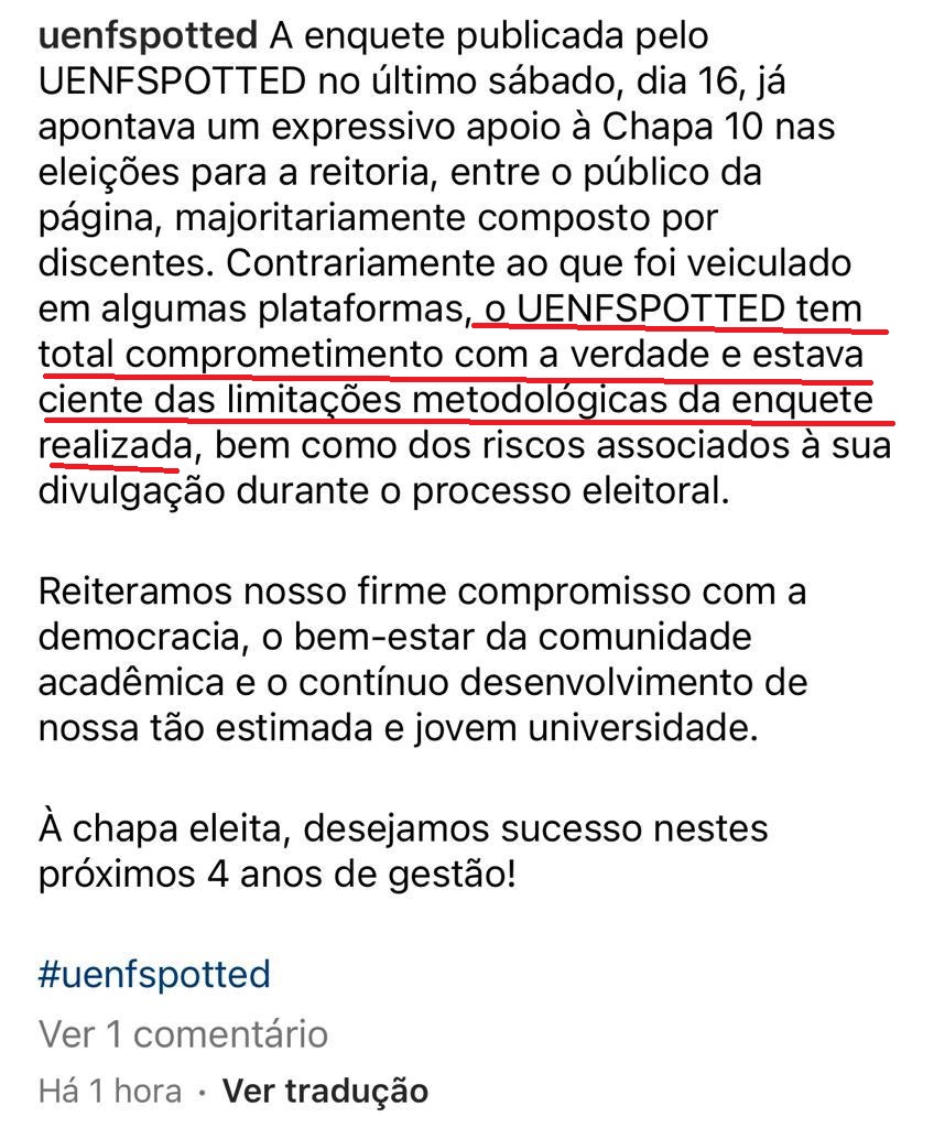 Depois de completada a tarefa, Uenfspotted tenta dar uma de “isentão”