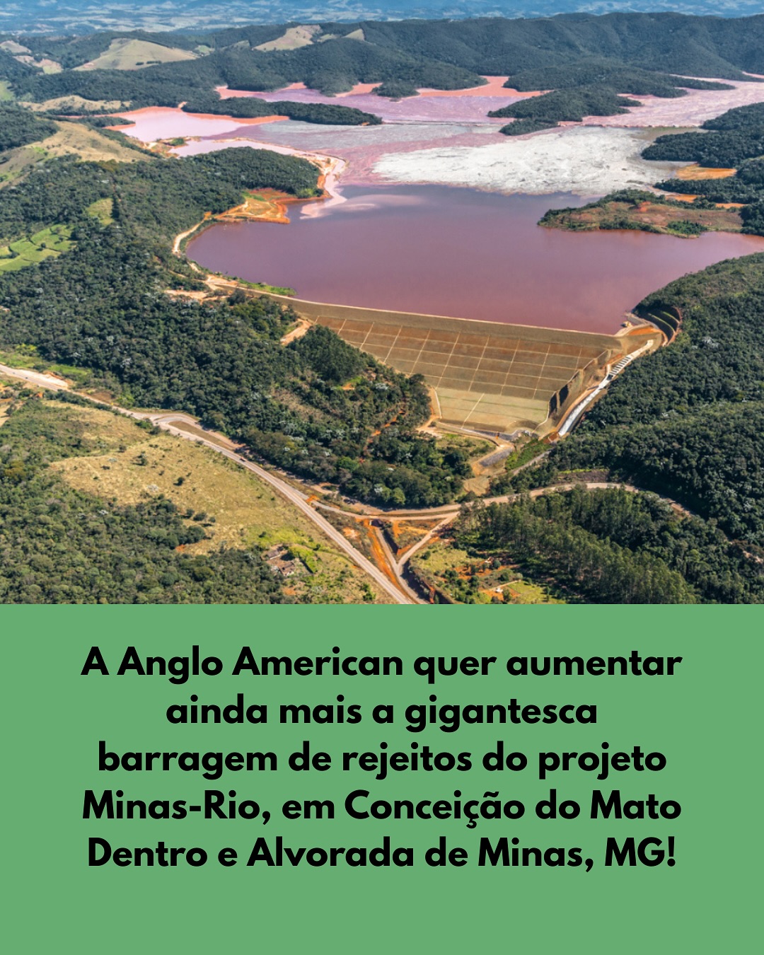 Mas a despeito do que diz a lei, a Anglo American quer impor, com a ajuda do governo Zema, a ampliação da barragem, o que, se concretizado, irá aumentar ainda mais os riscos de outro tsulama de proporções épicas, ameaçando comunidades do entorno imediato de forma mais direta, mas gerando riscos para regiões mais distantes, visto a capacidade dos rios carregaram rejeitos como foi o caso do Rio Doce que até hoje despeja resíduos da barragem do Fundão no oceano Atlântico.