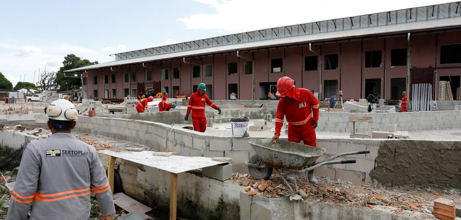 Criando novas acomodações de última hora: Trabalhadores constroem um hotel em Belém (16 de julho de 2025). Foto: Wagner Santana/REUTERS