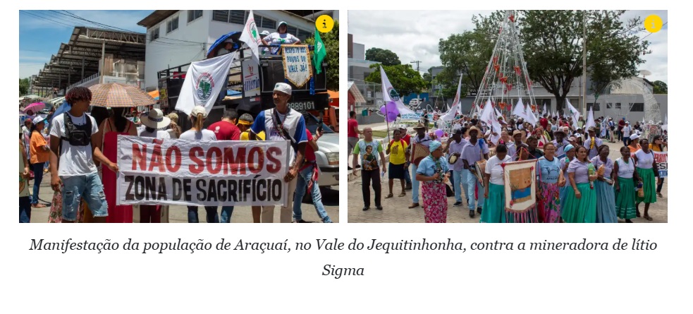 Manifestação da população de Araçuaí, no Vale do Jequitinhonha, contra a mineradora de lítio Sigma