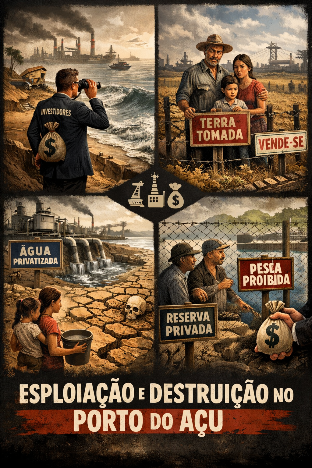 Desta forma, oque se observa no Porto do Açu não é um conjunto isolado de impactos, mas um padrão sistemático de espoliação socioambiental, legitimado por licenças frágeis, silêncios institucionais e pela instrumentalização do discurso da sustentabilidade. Erosão anunciada, terras roubadas, água apropriada, pescadores expulsos e culturas apagadas compõem um mesmo projeto territorial que transfere riqueza e segurança a investidores globais enquanto impõe precariedade, insegurança hídrica e desterritorialização às populações locais. Trata-se de um caso emblemático de como grandes empreendimentos, sob a complacência do poder público, convertem o litoral e o campo em zonas de sacrifício, deixando como herança não o “desenvolvimento”, mas um rastro de injustiça social, degradação ambiental e violação de direitos históricos.