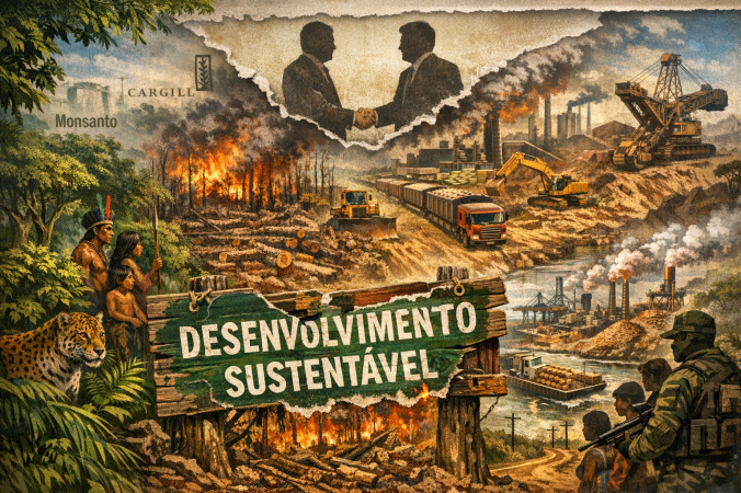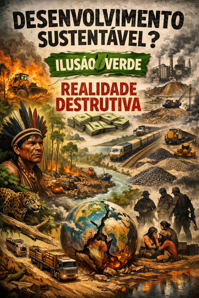 Desta forma, o chamado “desenvolvimento sustentável” tem operado, no caso da Amazônia, mais como discurso legitimador do que como alternativa real ao modelo predatório vigente. Apesar da retórica ambiental, os investimentos públicos e privados continuam priorizando grandes obras de infraestrutura, mineração e agronegócio, aprofundando o desmatamento, os conflitos sociais e a violência contra povos indígenas e comunidades tradicionais. Esse padrão revela um amplo consenso político em torno de um projeto de uso da Amazônia subordinado ao sistema agroquímico-mineral, incompatível com uma sustentabilidade efetiva.