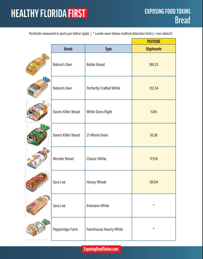 “O pão é um alimento básico para muitas famílias da Flórida, e elas devem poder consumi-lo sem se preocupar com toxinas ”, disse o Dr. Joseph Ladapo, Cirurgião-Geral do Estado, em um comunicado . “Nossos testes encontraram altos níveis de glifosato em algumas marcas populares de pão. A exposição crônica ao glifosato está ligada a alterações prejudiciais na microbiota intestinal, inflamação do fígado e efeitos neurológicos adversos. A Flórida está tomando medidas por meio da transparência, testes contínuos e um foco claro na redução da exposição para proteger as famílias.”