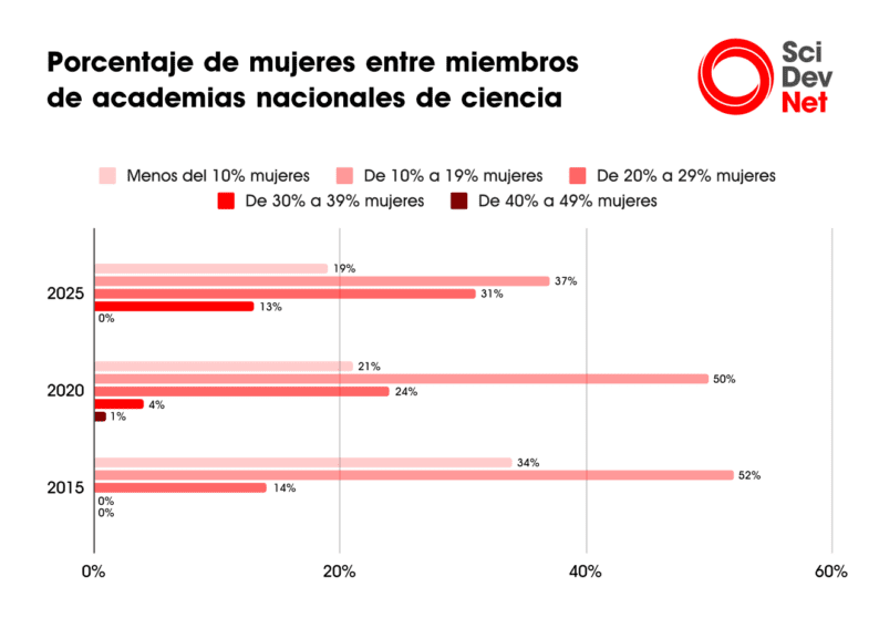 Segundo suas descobertas, em 2015 as mulheres representavam 12% das academias nacionais de ciências, enquanto em 2025 esse número subiu para apenas 19%. Apenas uma em cada cinco era presidida por uma mulher, e quase metade não tinha vice-presidentes mulheres, demonstrando que a presença feminina não se traduz necessariamente em maior igualdade.