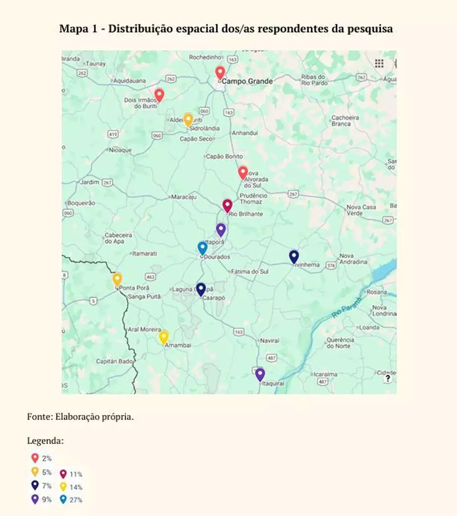 A distribuição espacial envolveu populações da região central do Estado, como Campo Grande e Sidrolândia; do sul , em municípios como Dourados, Itaporã, Caarapó e Rio Brilhante; além da região sudoeste, com Ponta Porã e Amambai, e da região sudeste, em Ivinhema.