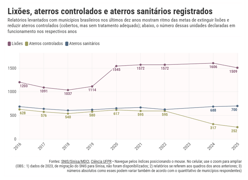 “A partir dos dados [base de 2024], pode-se observar que a maioria dos estados ainda usa lixão ou aterro controlado, que são formas inadequadas. Isso gera custos ambientais, sociais e econômicos enormes. Contaminação do solo, da água, problemas de saúde pública, enfim, passivos, que depois vão sair muito mais caros de remediar”, avalia a professora, em entrevista à Ciência UFPR.