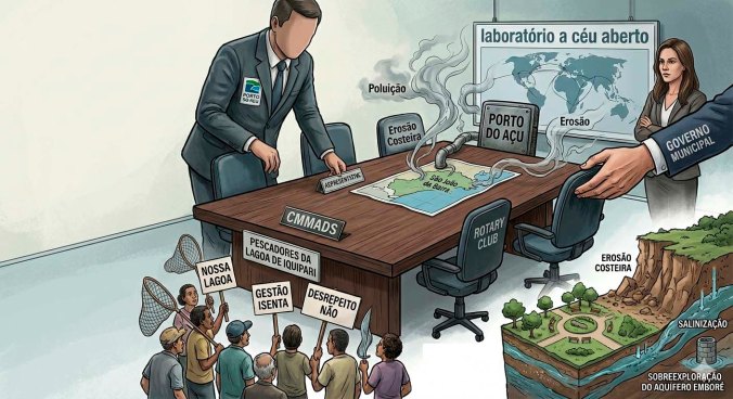 As medidas, ainda que previsíveis, não devem encerrar os questionamentos legais sobre a presença de um dos principais agentes de impacto ambiental ocupando cadeiras no conselho. O contexto se agrava diante da proposta de transformar parte significativa do V Distrito em uma vitrine ambiental de caráter questionável, conforme previsto no novo Plano Diretor Municipal. O objetivo, segundo a crítica apresentada, seria isolar as comunidades locais e, ao mesmo tempo, obscurecer problemas já evidentes, como a erosão costeira, a salinização de águas continentais e a sobreexploração das reservas hídricas do Aquífero Emborê.