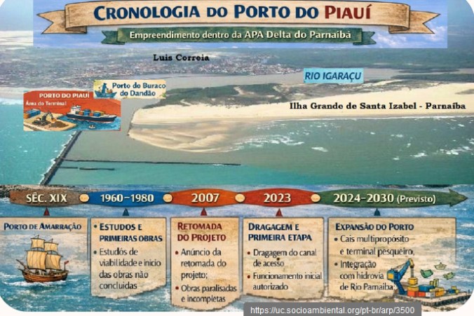 O pedido de licenciamento foi protocolado em 2025 junto à SEMAR-PI, mas, por se tratar de uma unidade de conservação federal, o ICMBio também se manifestou e negou a autorização, apontando riscos de impactos irreversíveis e a inviabilidade do projeto na área. Ainda assim, o governo estadual tem buscado rever normas e o zoneamento da APA para viabilizar o porto, o que gera preocupação, já que o próprio EIA reconhece um potencial de danos significativos aos recursos socioambientais e à biodiversidade da região.